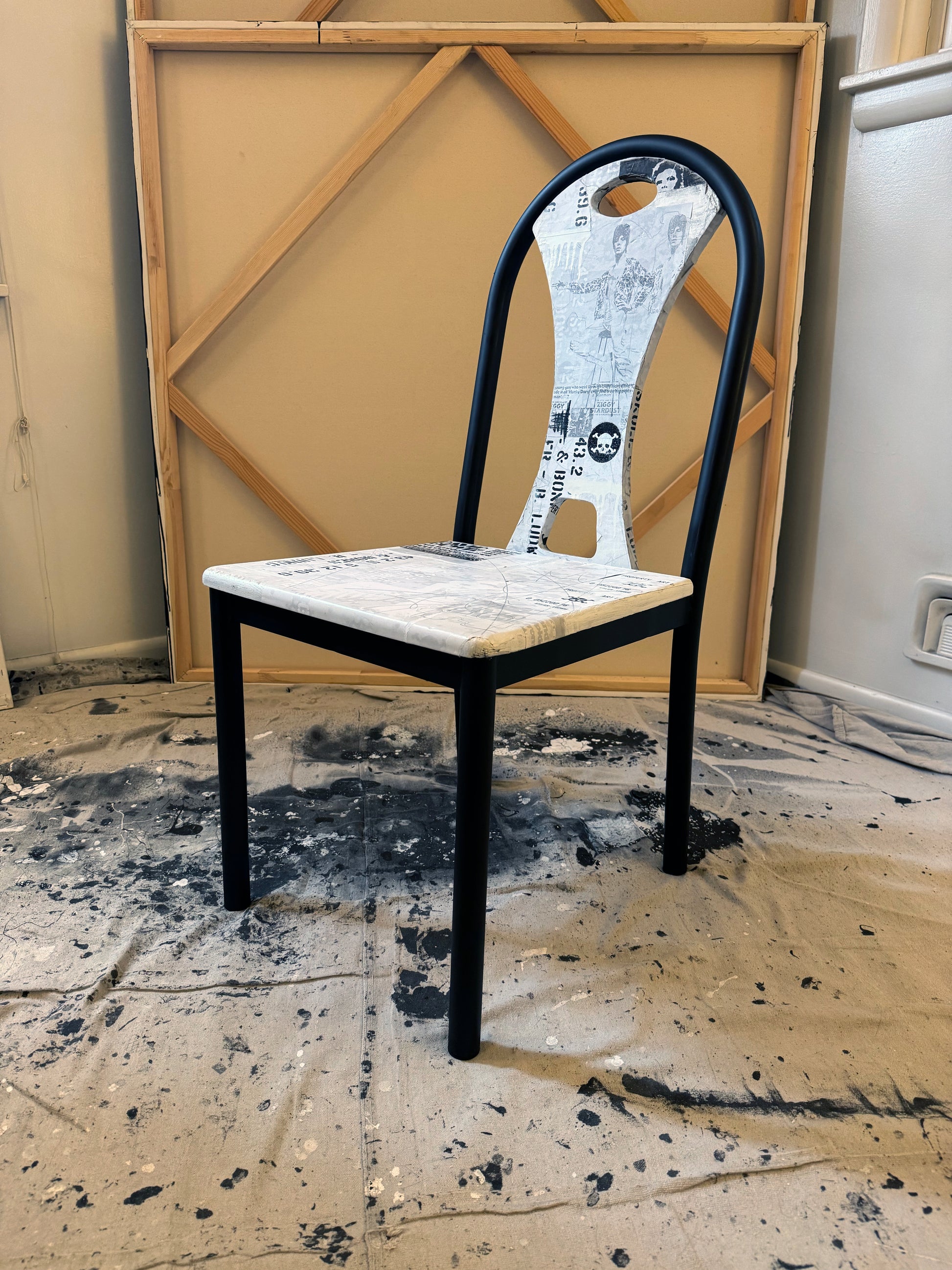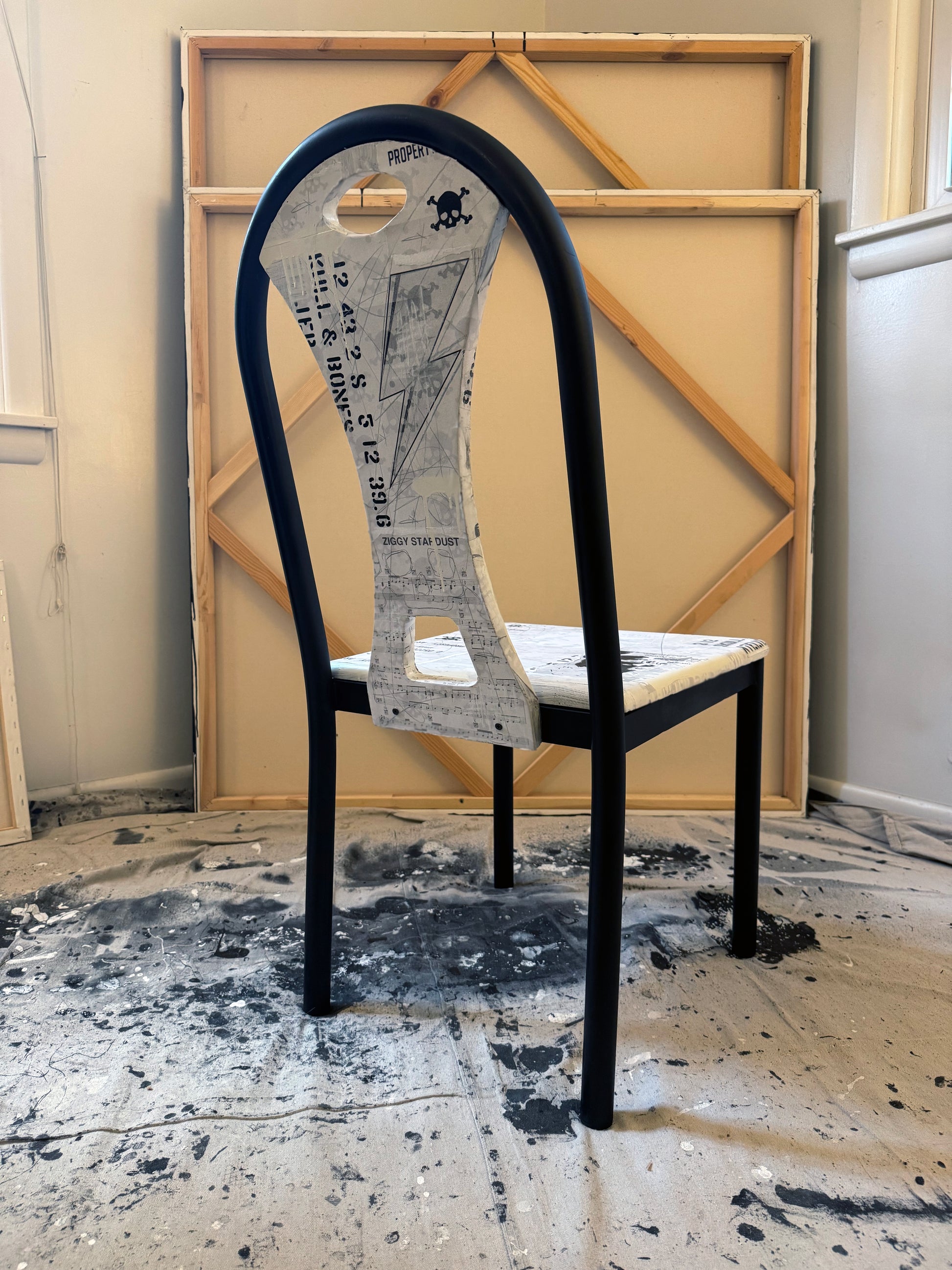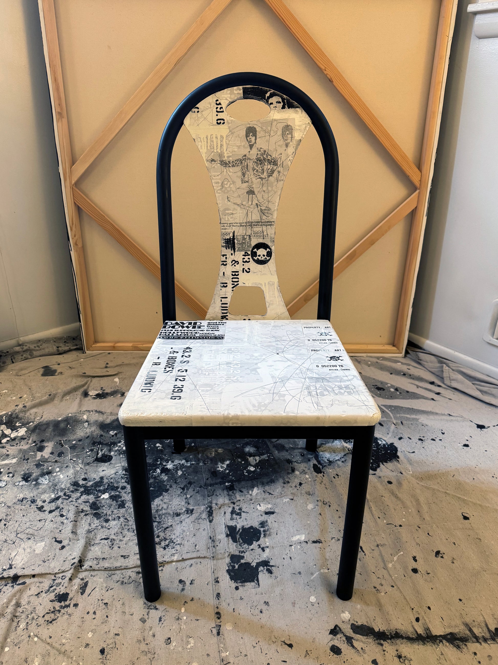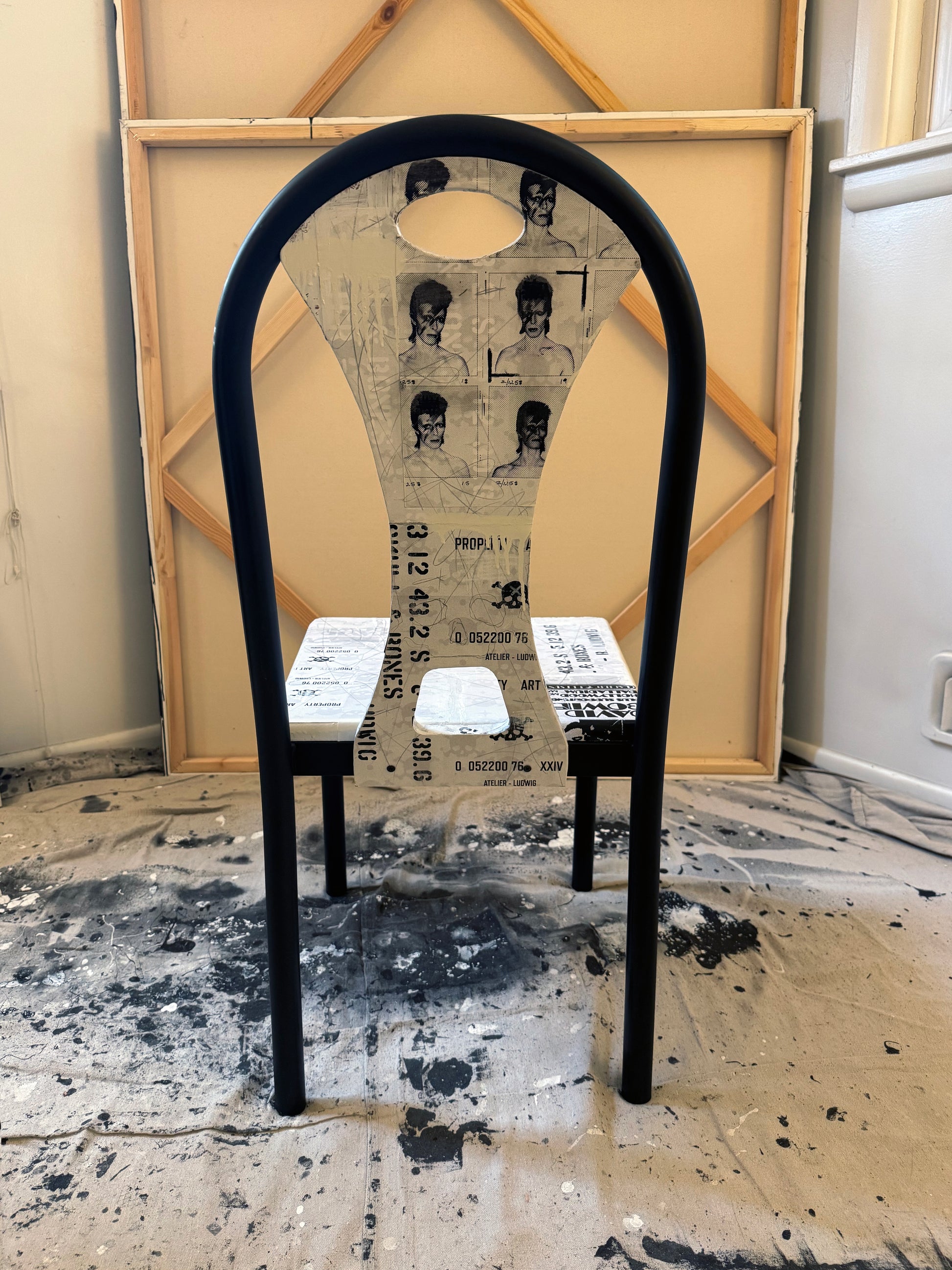 This is the FIRST one of a kind David Bowie Cafe Table + Chairs mixed media piece by Billy Ludwig.