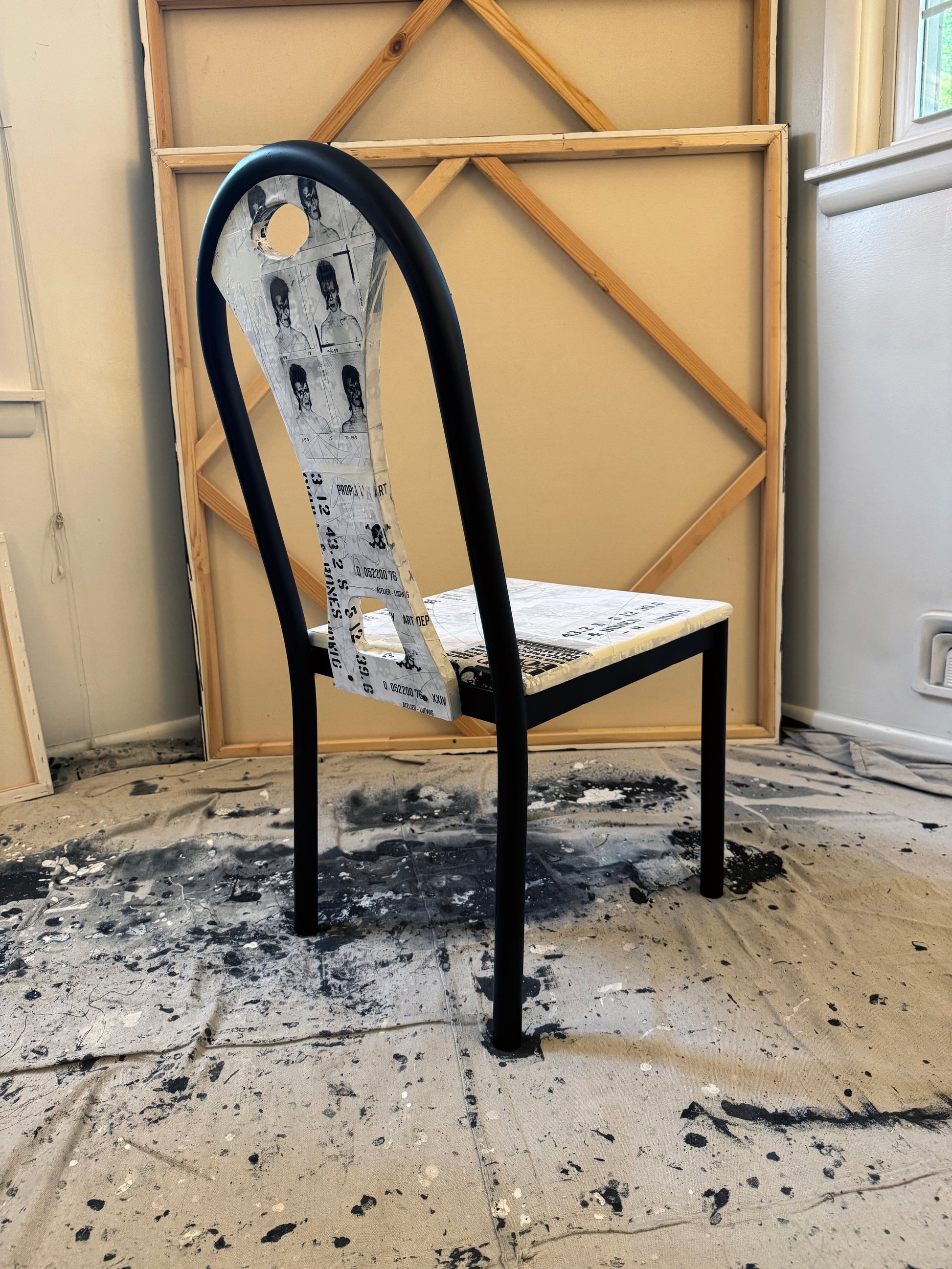 • Chairs: Standard size, matte black metal frame with wood seat and backrest