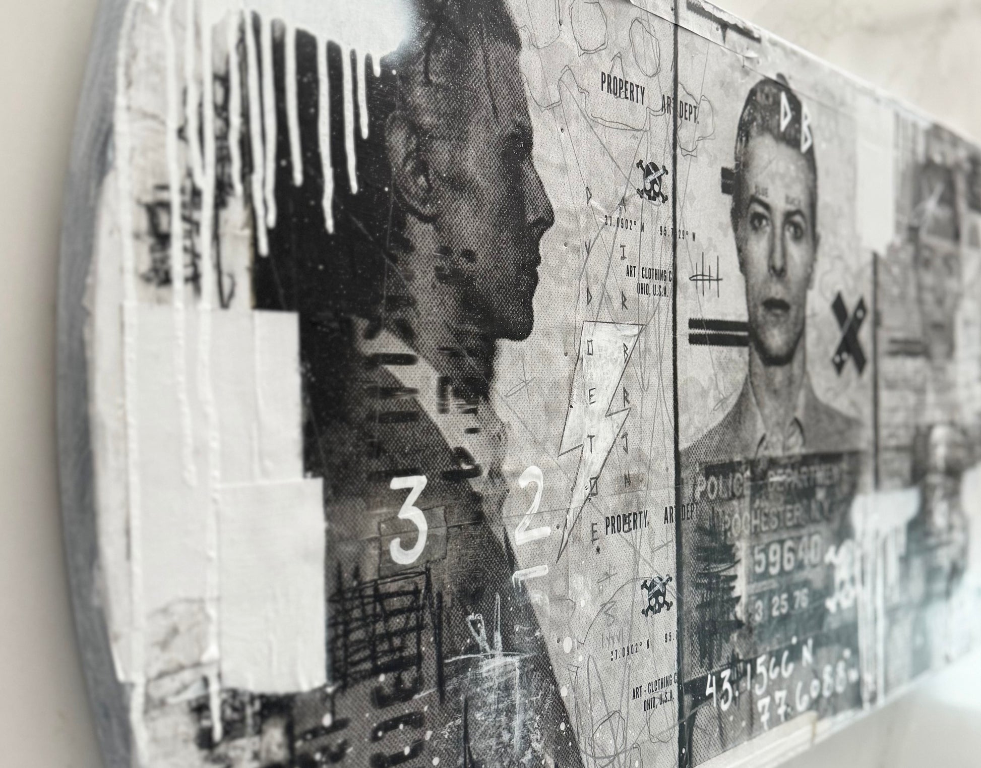 One of a kind David Bowie mixed media piece by Billy Ludwig.