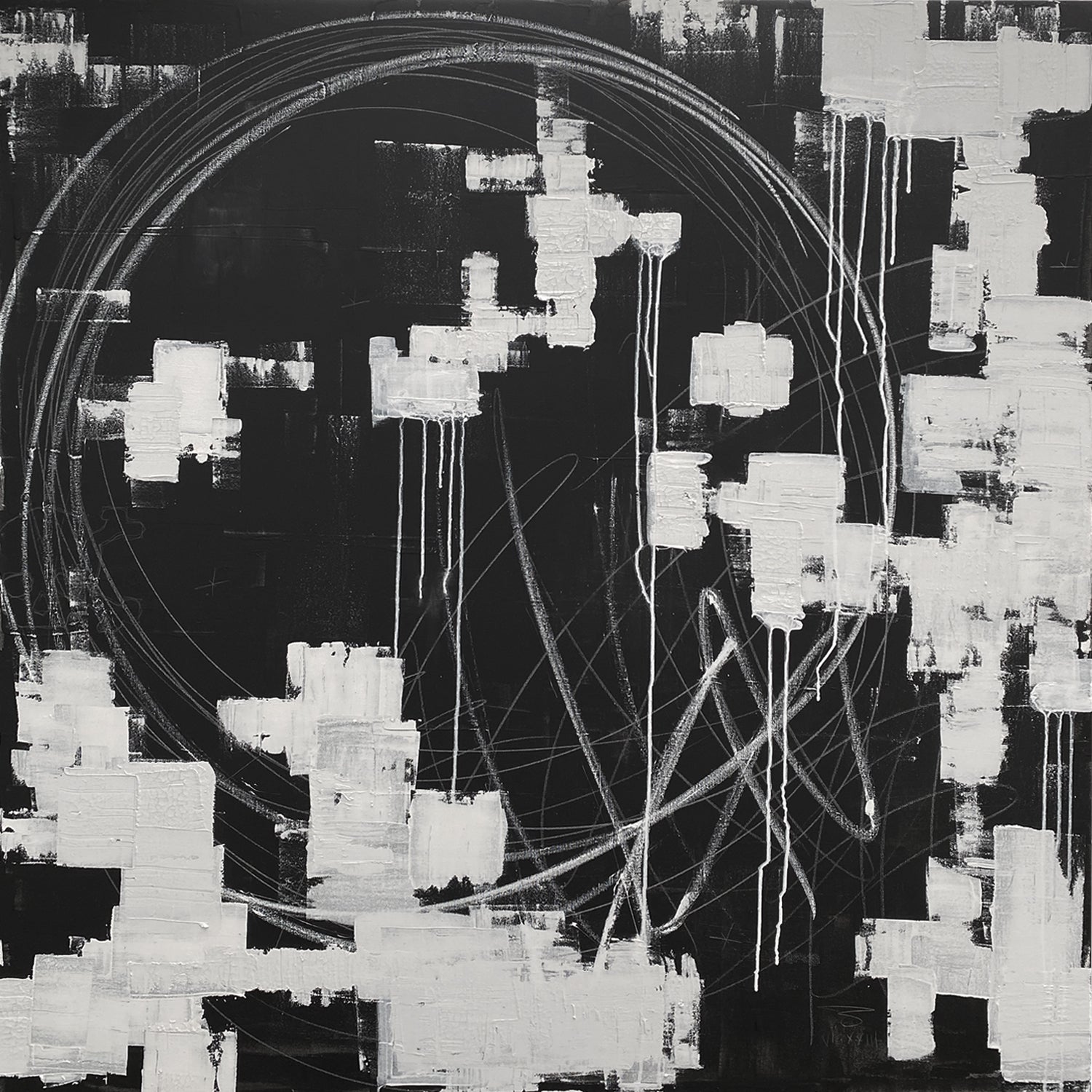 - Acrylic paint, oil stick and pencil on stretched canvas