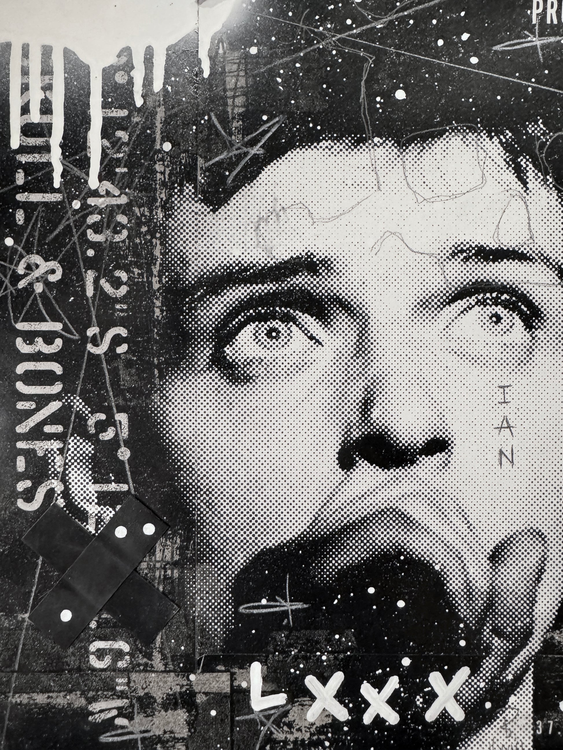 This is one of a kind Ian Curtis mixed media piece by Billy Ludwig.